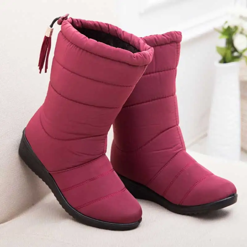 New Product Winter Women Boots Mid-Calf Down Boots High Bota Waterproof Ladies Snow Winter Shoes Woman Plush In