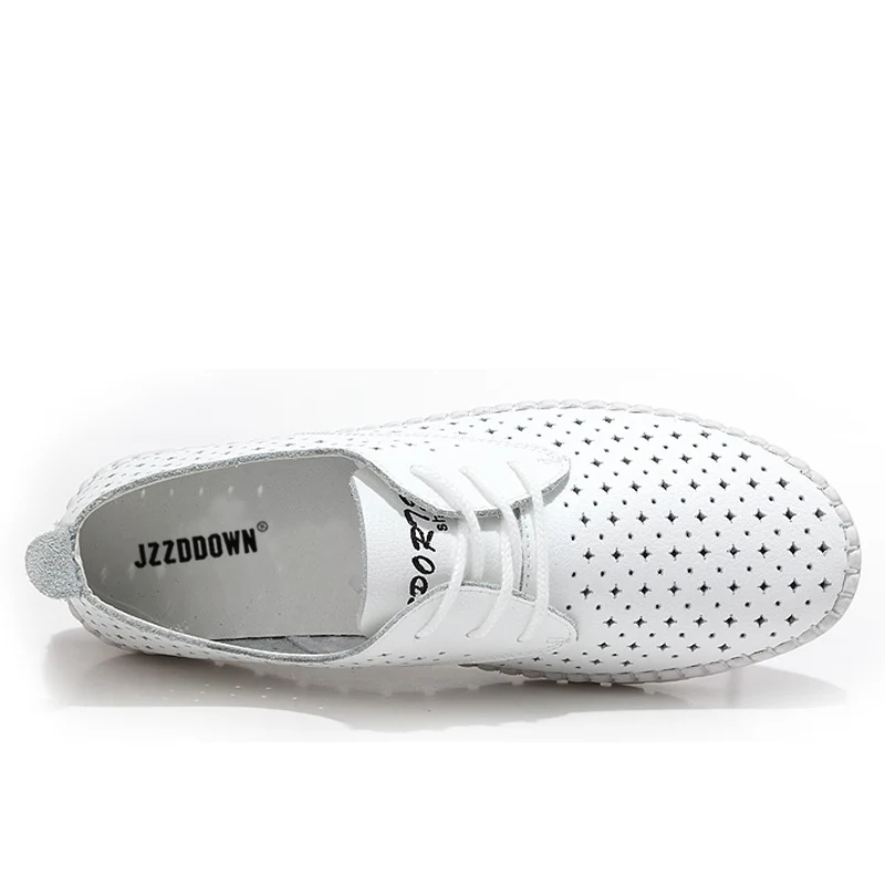Best Genuine Leather ladies flats sneakers shoe Women casual loafers shoes female Hollow moccasins White