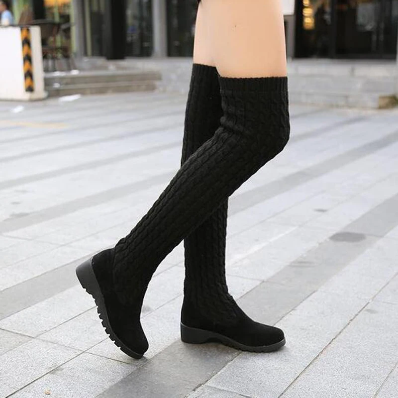 Big Deal 2019 Fashion Knitted Women Knee High Boots Elastic Slim Autumn Winter Warm Long Thigh High Boots Wo